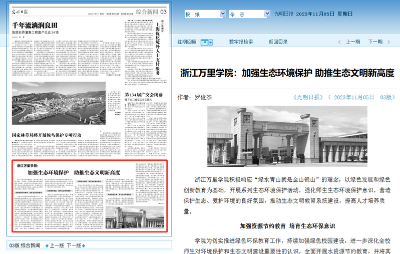 近日,我校法学院罗俊杰副教授分别在《人民日报》理论版刊登署名文章《以文塑旅 以旅彰文 推进文化和旅游深度融合发展》;在《光明日报》综合新闻版刊登署名文章《浙江万里学院:加强生态环境保护 助推生态文明新高度》。
