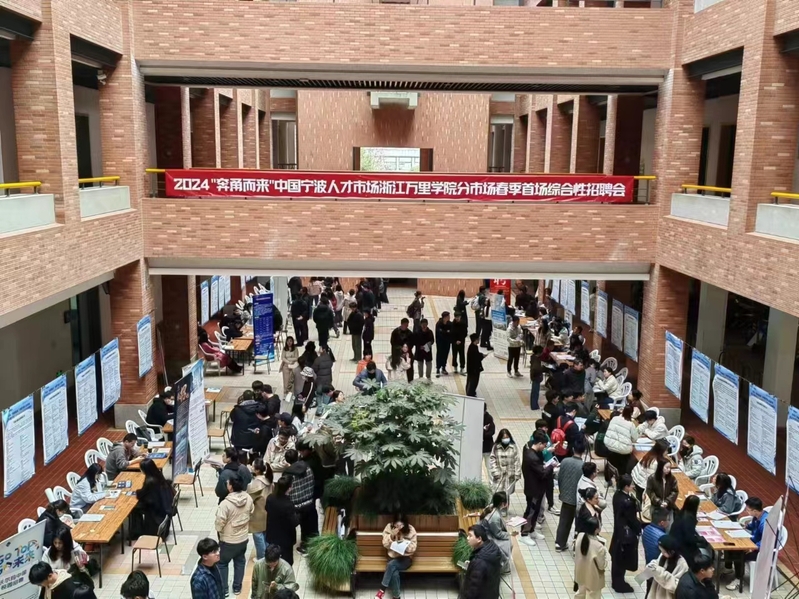 3月16日上午,2024“奔甬而来”中国宁波人才市场浙江万里学院分市场春季首场综合性招聘会暨“百川汇海·来曙有WEI”浙江万里学院海曙区专场招聘会在我校钱湖校区拉开帷幕。