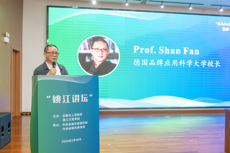 Shan Fan介绍了德国品牌应用科学大学办学特色、“品牌科学”学科、交互大学发展理念,并表达了德国品牌应用科学大学希望和浙江万里学院共同参与余姚发展的意愿。