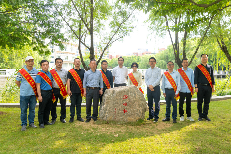 马小平和林志华共同为“劳模林”揭牌。这片绿地正式成为传承劳模精神的场所,成为校园内一道亮丽的风景线。
