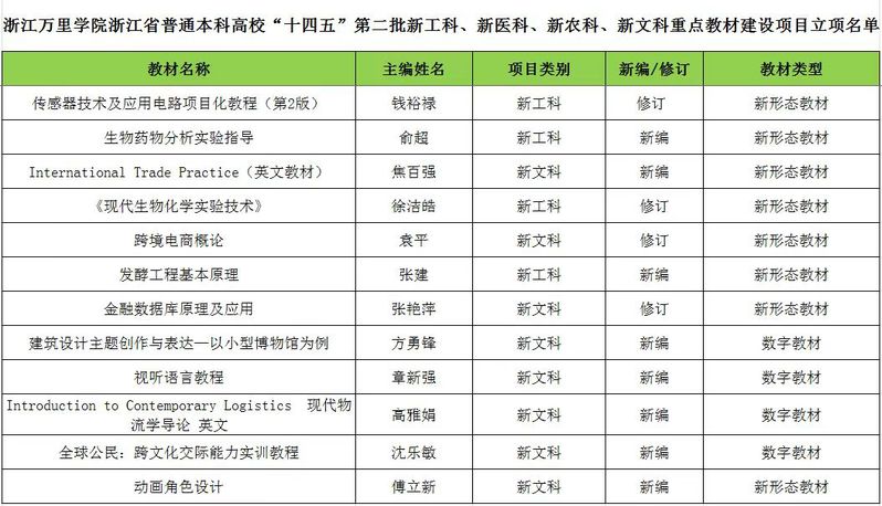 近日,浙江省高等教育学会公布了浙江省普通本科高校“十四五”第二批新工科、新医科、新农科、新文科重点教材建设项目立项名单,我校共有12本教材建设项目入选,其中新形态教材8本,数字教材4本。此前,我校已有13本教材建设项目入选浙江省“十四五”首批重点教材建设项目。