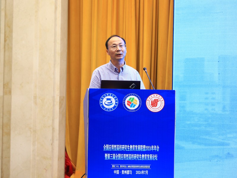 7月11至13日,全国应用型高校研究生教育发展联盟2024年年会暨第三届全国应用型高校研究生教育发展论坛在贵州都匀召开。教育部学位管理与研究生教育司(国务院学位委员会办公室)一级巡视员唐继卫,中国学位与研究生教育学会副会长、中国科学技术大学原副校长张淑林教授,中国学位与研究生教育学会副秘书长沈岩教授,贵州省教育厅二级巡视员邓生井及来自国内80所高校的校领导、研究生院(处)负责人等200余人参加会议。我校校董会董事暨联盟理事长钱国英、副校长徐立清和研究生处、各学位点相关人员参加会议。