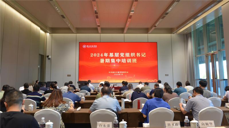 为深入学习贯彻党的二十届三中全会精神,统筹推进教育科技人才体制机制一体改革,深入推进党建“四个融合”行动和“抓院促系、整校建强”工程,切实提升基层党组织书记“党建带头、学术带头”能力,从而进一步强化学校基层党组织提质增效,以高质量党建不断引领学校事业高质量发展。7月29日-7月30日,学校举办2024年基层党组织书记暑期集中培训班。二级党组织书记、副书记,党务部门相关人员参加培训。学校党委领导参会指导。
