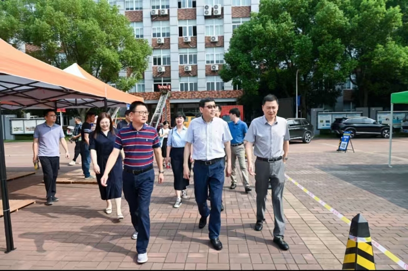 林良富一行先后前往回龙校区迎新点、4号、5号、39号寝室楼、图书馆、中德品牌学部、大数据与软件工程学院、文化与传播学院、体育公园、钱湖校区西大门等处实地查看,听取了相关负责人开学准备情况的汇报,对开学各项准备工作落实情况予以充分肯定,对相关工作进行现场指导。