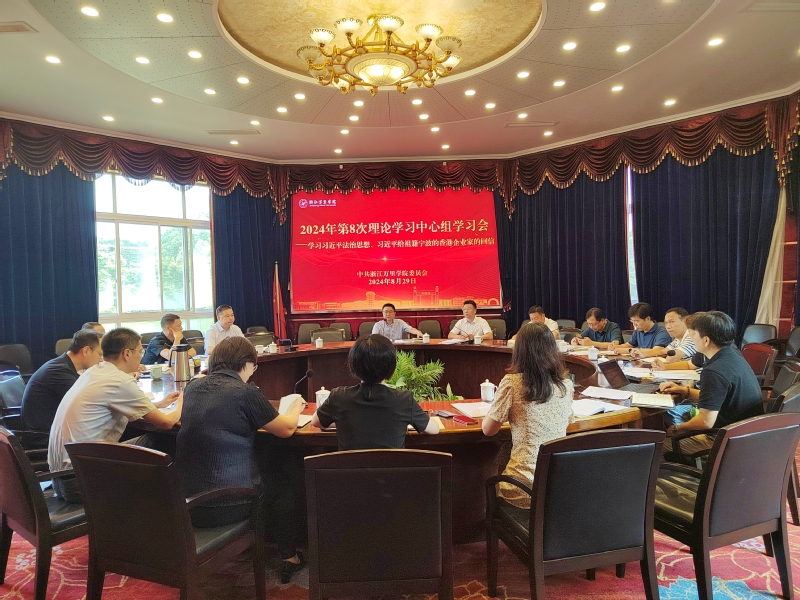 8月29日,校党委理论学习中心组在行政楼202会议室举行2024年第八次集体学习,专题学习习近平法治思想、习近平总书记给祖籍宁波的香港企业家的回信精神。校党委书记王伟忠主持学习会。