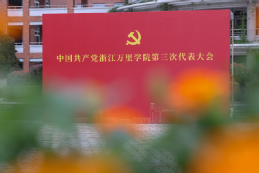 万里校园生机勃勃,素质拓展中心气氛热烈。主席台上方悬挂着“中国共产党浙江万里学院第三次代表大会”的会标,后幕正中是镰刀和锤头组成的中国共产党党徽,十面鲜艳的红旗分列两侧,交相辉映。会场后方放置着“感恩奋进启新程 聚力改革谱新篇 为全面建设国内一流、国际知名的高水平应用型大学而团结奋斗”的鲜艳展板。