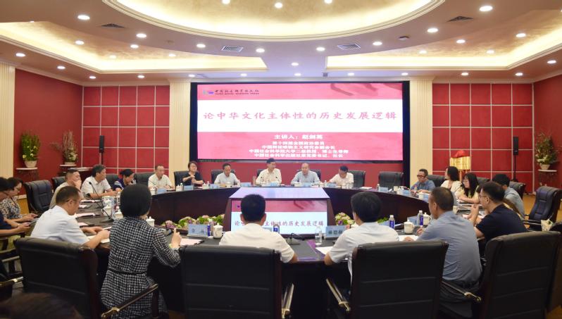 赵剑英以“中华文化主体性的历史发展逻辑”为主题,从文化主体性的概念解读切入,强调文化主体性是习近平文化思想的一个标识性概念,指出文化主体性即以文“化人”过程中所呈现的特性,突出表现为习近平总书记所概括的“引领力、凝聚力、塑造力、辐射力”。他从中华文化主体性的历史形态、近代中华文化主体性遭遇的危机与重构、在探索和发展中不断增强中华文化主体性以及习近平新时代中国特色社会主义思想巩固了中华文化主体性等层面进行了系统梳理和全面阐述。