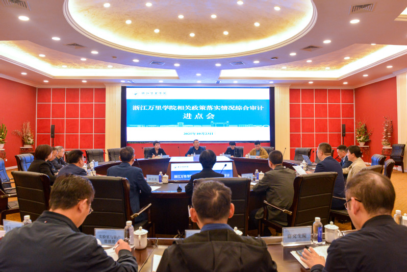10月23日,省教育厅对浙江万里学院相关政策落实情况综合审计进点会在我校钱湖校区行政楼112会议室召开。省教育厅审计处处长陈常龙主持会议,省教育厅审计处四级调研员、审计组组长李清,审计组主审吕蒋淦,浙江省万里教育集团董事长、党委书记吕洁,党委副书记、总裁林良富,浙江万里学院校长林志华,党委书记王伟忠等领导出席会议。
