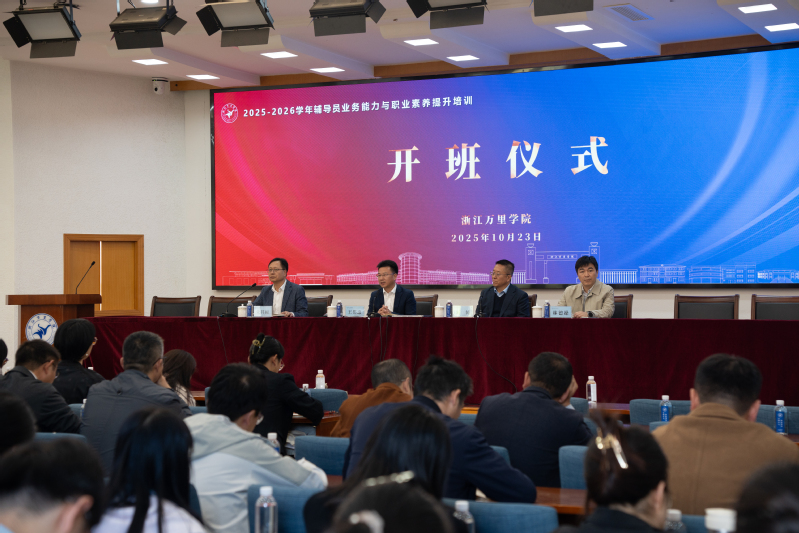 2025-2026学年辅导员业务能力与职业素养提升培训班开班仪式于10月23日下午在行政楼212会议室举行,党委书记王伟忠出席并讲话,党委宣传部(教师工作部)、学生工作部、招生就业处、研究生院相关负责人,二级学院分管学生工作负责人,全体辅导员及部分教师代表共同参加。开班仪式由党委副书记朱邦相主持。