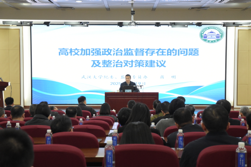 会议邀请了武汉大学纪委副书记蒋明研究员作题为《高校加强政治监督存在的问题及整治对策建议》的专家辅导报告。蒋明从政治监督的概念内涵,高校加强政治监督的必要性、高校政治监督的实践探索、当前高校政治监督存在的主要问题及原因、对策与建议等方面系统、深入地和与会人员进行交流探讨。