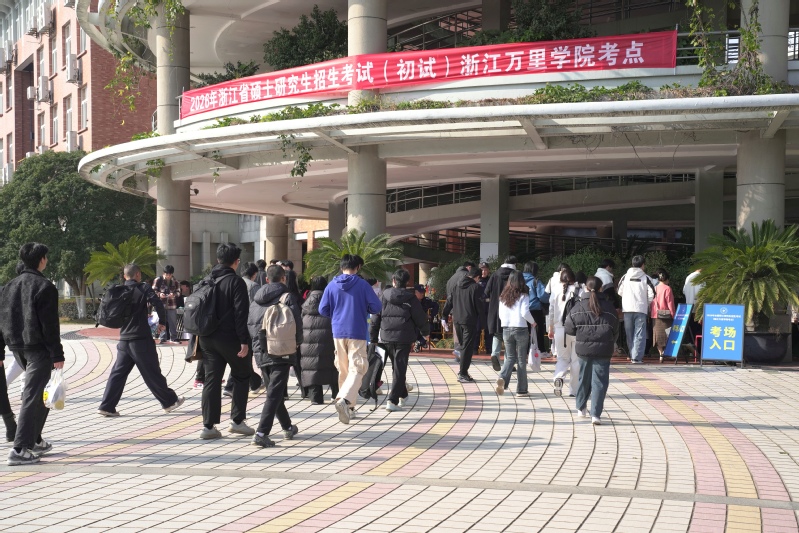 12月21日至22日,2026年全国硕士研究生招生考试顺利举行。我校考点迎来2400余名考生参考,共设置标准化考场84个、备用考场2个。校长办公室、教务处、校园建设管理部、安全保卫部、研究生院、学生工作部、文献与信息中心和宁波万里后勤服务有限公司等多部门并肩联动,全校上下通力协作,200余名考务人员、后勤保障人员与学生志愿者全情投入、严阵以待,全力为考生营造从容、温馨、公平的应考环境。