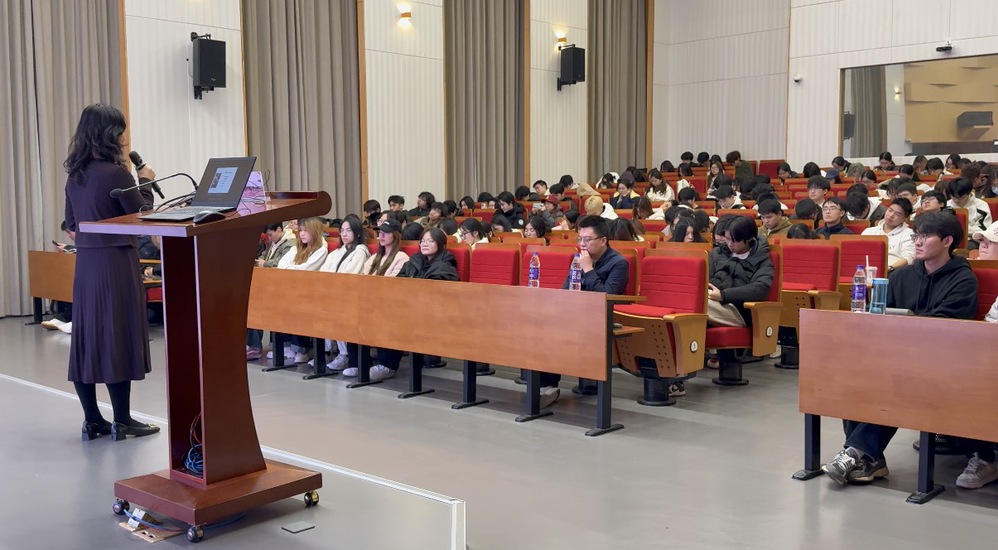 2025年12月17日晚,中国科学院杭州医学研究所智能分子诊断研究中心主任、长江学者青年专家渠凤丽博士应邀来到学院,为华美生命健康学院全体大一学生作题为《分子诊疗恰同学少年》的专题讲座,讲座内容兼具学术深度、人文温度与时代视野,紧扣生命健康领域的发展脉搏,深入浅出解读分子诊疗技术的前沿进展,并结合国家战略与个人成长经历为青年学子指明了前进的方向。在这场知识密集、启发性强的分享中,同学们不仅领略到分子诊疗的科技魅力,业更坚定了投身生命健康领域的初心与信念,专业探索之路由此点亮。