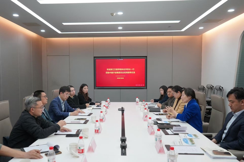 1月30日下午,林志华一行来到中基宁波集团。集团副总裁阎瑾热情接待并座谈交流。参观中,林志华详细了了企业发展历程、核心业务布局、企业文化建设等情况,深入了解企业当前人才需求导向、岗位供给数量,真切感受企业蓬勃的发展活力与鲜明的用人特色。座谈会上,林志华详细介绍了学校的发展概况、学科专业特色、毕业生就业整体情况。他表示,校企合作是推动人才培养与社会需求精准对接的重要路径,希望双方创新合作模式,通过“企业出题、师生答题”等方式深化合作,在科研合作、协同育人、就业输送等方面持续发力,打造校企深度合作新典范。阎瑾回顾了校企双方长期以来在人才培养、实习实践等方面的合作成果,对双方正在联合推进的中基大宗商品启航班给予高度评价,希望与学校在人才定制培养、实习实训基地共建、产学研项目协同攻关等方面进一步深化合作,实现校企资源互补、互利共赢。