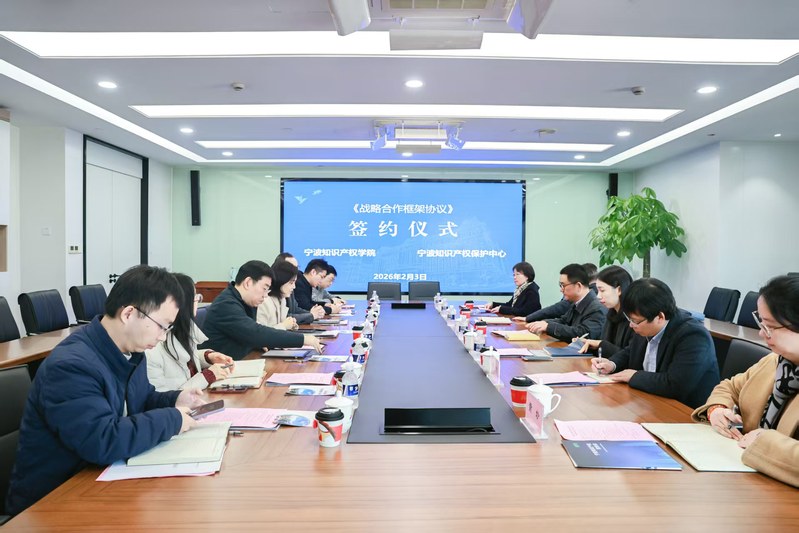 2月3日下午,林志华带队赴宁波知识产权保护中心调研。座谈中,林志华指出,开展访企拓岗促就业活动,既是落实国家就业工作部署、拓宽毕业生就业渠道的重要举措,更是推动教育链、人才链与产业链、创新链深度融合的战略行动,对学校优化人才培养模式、提升人才培养质量具有重要意义。他强调,宁波知识产权学院与宁波知识产权保护中心同为国家级技术支持中心建设单位,双方合作具有坚实基础和广阔空间,希望双方立足服务地方经济社会发展大局,打破校园与社会壁垒,通过“订单式”人才培养、双师型教师队伍共建等机制,精准培育“下得去、用得上、留得住”的高素质应用型法治与知识产权人才,助力区域知识产权事业高质量发展。座谈会上,宁波知识产权学院与宁波知识产权保护中心签署战略合作框架协议,标志着校地合作步入常态化、制度化新阶段。