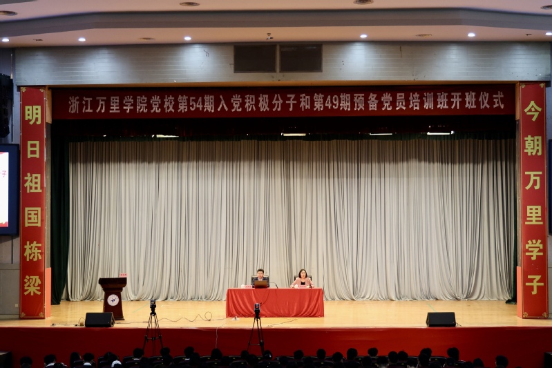 为深入学习贯彻党的二十届四中全会和2026年全国两会精神,引导青年学子坚定理想信念、锤炼党性修养,4月11日上午,学校党校第49期预备党员培训班、第54期入党积极分子培训班开班式,在钱湖校区主会场、回龙校区分会场同步举行。校党委书记、党校校长王伟忠出席开班式并讲授第一课,党委组织部负责人、相关二级学院党委书记、各二级党组织专职组织员及全体学员参加。