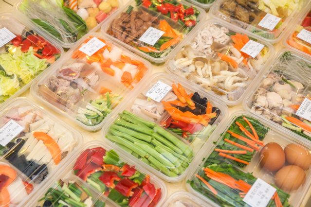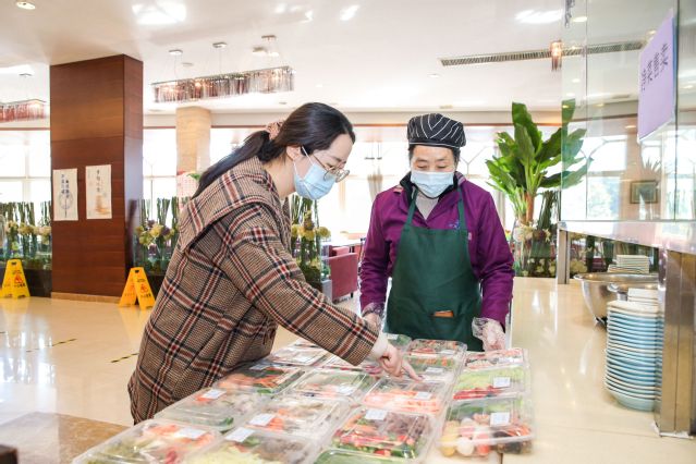 每天一大早,食堂工作人员采购好新鲜的农产品,早上6点,食堂工作人员开始洗菜、切菜、配菜,10:30之前,把配菜全部装入餐盒,包上保鲜膜,贴好标签。老师们中午到餐厅吃饭的间隙,顺便买一些新鲜净菜,下班后不再需要到菜市场买菜,就可以直接做饭了。