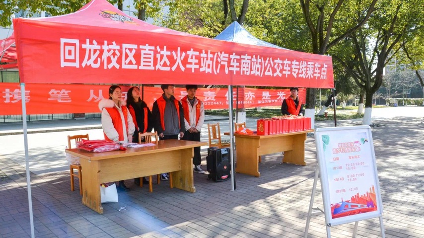 为方便学生寒假返乡,学校还安排了回龙校区到宁波站(汽车南站)的直达专线,13-15日连续三天定点发车,力争省时、安全地将学子送上回家的旅途。钱湖校区根据前期同学们的搭乘意愿,开设“温暖回家路”公交专线,从钱湖校区西门网球场始发,直达宁波火车站,中间不停靠。