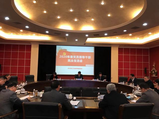 1月21日,学校党委组织召开了2020年度党员领导干部民主生活会,省教育厅党委副书记干武东莅会指导,校长应敏等党员校领导参加,党委书记蒋建军主持会议。