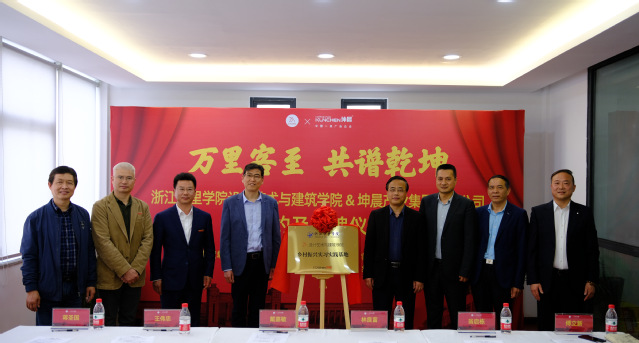 3月31日,设计艺术与建筑学院携手坤晨产业集团合作建立的“乡村振兴实习实践基地”揭牌仪式在坤晨产业集团总部举行。浙江省万里教育集团总裁林良富、校党委副书记王伟忠、设计艺术与建筑学院副院长傅立新、坤晨产业集团董事长陆有财以及校企双方代表参与本次活动。同时,鄞州区政协党组成员戴嘉敏、宁波市奉化区经济促进会会长翁启栋等领导嘉宾出席。