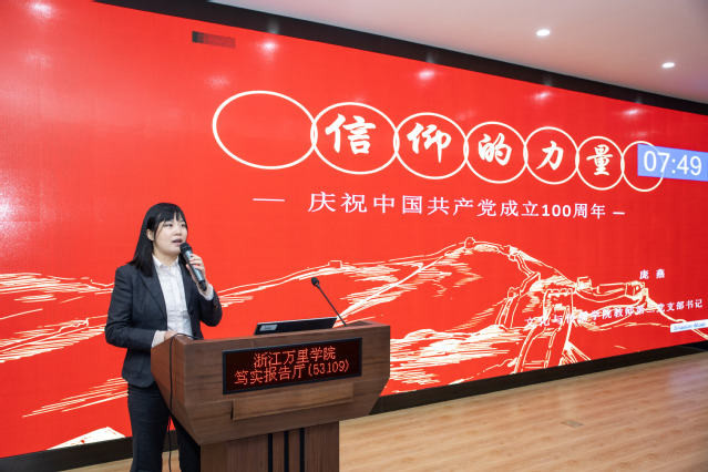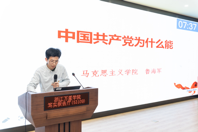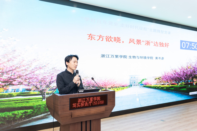 为进一步扩大微型党课覆盖面,经前期各二级党组织精心选拔和推荐,共有17名党员教师选手参加现场比赛。选手们围绕“学好百年党史,走好时代征程”这一主题,以宣讲习近平新时代中国特色社会主义思想为核心任务,围绕党史、新中国史、改革开放史、社会主义发展史,讲出了中国共产党为什么能,讲出了习近平新时代中国特色社会主义思想的真理伟力,展示了党的伟大成就和宝贵经验,展示了浙江和浙江教育在“八八战略”指引下发生的深刻变化和取得的喜人局面,讲出了浙江争创社会主义现代化先行省、宁波建设现代化滨海大都市,以及学校实现万里“大学梦”的的实践路径。以小见大、有感而发、深入浅出,以真人真事真感情教育了广大党员干部群众,从不同角度诠释了共产党员的使命担当,展现了共产党人的先锋本色。