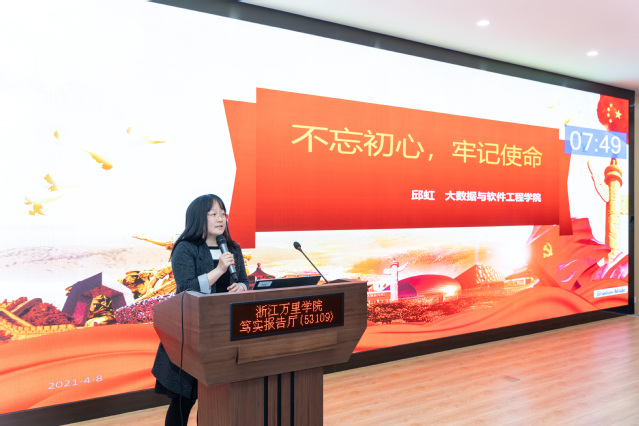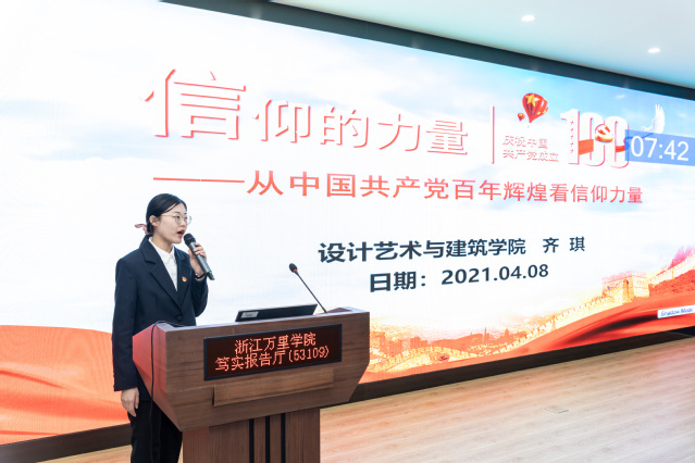 为庆祝中国共产党成立 100 周年,落实学校党委2021年工作要点精神,按照学校党委关于开展党史学习教育的实施方案,4月8日,我校举办了“学好百年党史 走好时代征程”主题微型党课比赛。校党委书记蒋建军,党委副书记王伟忠,党委委员、秘书长、宣传部部长王福银,党委委员、组织部部长、统战部部长朱邦相,万里教育集团党委办公室主任罗旋,以及各分党委(党总支)书记、副书记、各党务部门负责人、专职组织员和部分师生党员代表观摩比赛。
