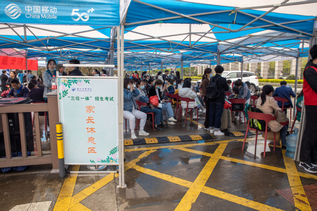 宁波本地考生何嘉俊则是全家出动,父母带着妹妹一起在家长等候区等待哥哥的考试结果。“虽然他进去前我们告诉他不要有什么压力,多一个机会,就以试一试的心态去迎接考试,但是他真正考试了,做父母的我们比他还紧张。”何嘉俊的父母来之前就对学校的基本信息进行了一定了解,有空的时候就陪孩子看看相关资料,对比往年的情况、今年的政策,希望孩子能有一个美好的未来。