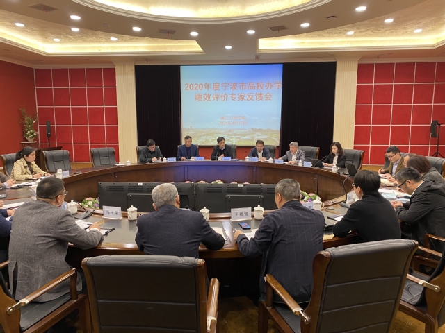 4月13日上午,我校召开2020年度宁波市高校办学绩效评价专家反馈会。专家组成员由宁波大学原校长聂秋华、宁波大学副校长汪浩瀚、宁波大学科技学院院长陈君静、浙大宁波理工学院副院长章献民、浙江纺织服装职业技术学院院长郑卫东组成,宁波市教育局高教处王梦捷出席。校长应敏,副校长马建荣,党委委员、宣传部部长王福银,党委委员、组织部部长朱邦相及相关职能部门负责人参加。专家组组长聂秋华主持会议。