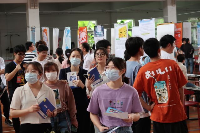 招聘会现场人声鼎沸,学生们三五成群,沿着摊位一家家察看咨询。在现场,不仅有附近南高教园区的高校学生参加,北高教园区的多所高校及浙江工商职业技术学院等高校的学生也闻讯赶来。除了大四的毕业生,不少大三甚至是大二的学生也赶来“临市面”,希望找到实习岗位。