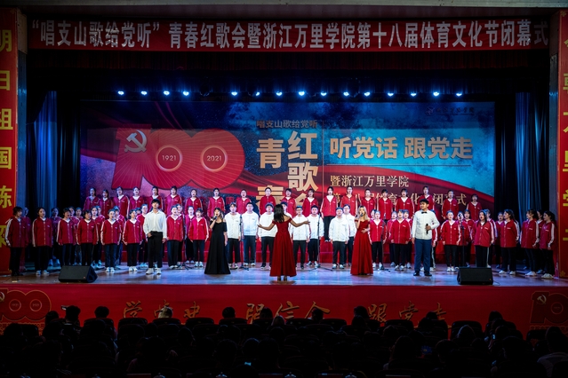 为庆祝中国共产党成立100周年,学校形成了以上率下、上下联动、师生融合的良好氛围,组织全校党员和师生开展了丰富多彩的庆祝活动,大力唱响时代主旋律。主题歌会是一堂“音乐党课”,也是一场红色思政大课。万里师生以传唱红色经典歌曲的形式唱响爱党爱国情,浸入式体验建党百年历程,在歌声中感悟信仰的力量,在传唱中激发奋斗的热情,推动了党史学习教育在师生中的持续深化。
