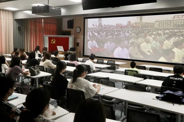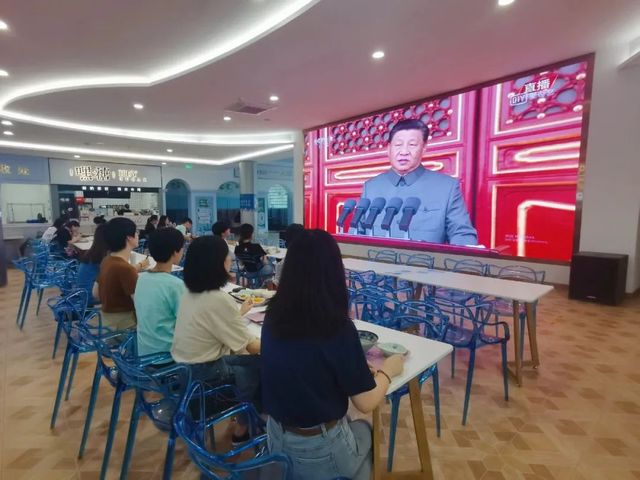 11个分党委(党总支)组织1800多名师生集中收看,95个支部以集中或分散的方式收看、收听了实况直播。马克思主义学院组织全体教师在回龙校区综合楼401会议室集体观看大会直播。大家凝神屏气,仔细聆听习近平总书记重要讲话,不时报以热烈掌声。大家脸上写满了自豪,眼里充满着自信,自始至终看完全程直播。万里后勤组织党员干部与员工代表在办公室共同观看庆祝大会直播。部分师生在万家万里餐厅收看直播。