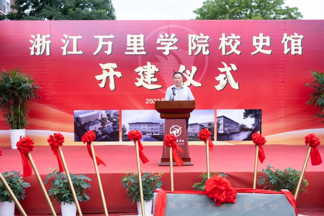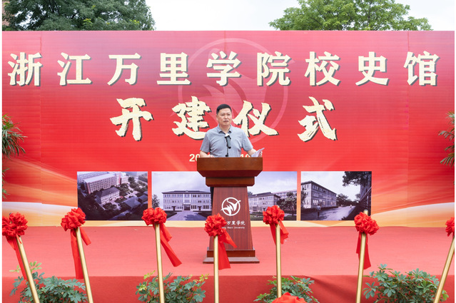 应敏代表学校和校友会致辞。他表示,在中国共产党成立100周年之际,校史馆正式开建意义非凡。他指出,校史馆是一所学校历史的记录,是学校创建、变迁、发展的映像,是校园文化的溯源和载体,是学校珍贵的精神财富,是永续流传的校训精神的浓缩,也是学校不断发展的动力源泉。应敏强调,校史馆的建设要彰显校史文化大融合、弘扬万里精神大内涵、书写万里奋进大历史、诠释万里发展大主题、凸显万里质量大标准。他指出,要以校史馆建设为新的起点,进一步加强对校史资料的整理与研究,深入挖掘学校独特的文化内涵,全面展示办学治校的辉煌历史和卓越成就,努力使校史馆成为学校文化建设的重要载体,学校办学思想不断发展的源泉,激励师生共同成长的重要土壤和学校思政教育、人文教育的重要基地,同时也成为连结各阶段、各地区校友的重要纽带。