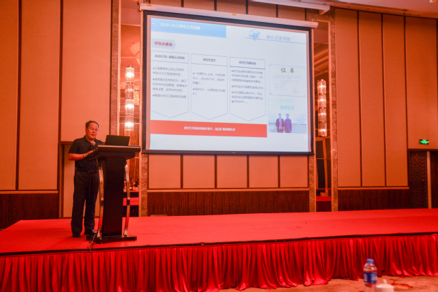 校长助理、规划与发展部部长徐立清以“关于学科点布局与培育建设的若干思考”为题作了专题报告,他以“升格为大学”为中心,从“硕士点和博士点”“教学与科研”“产教融合”三个方面展开,将实现学校“十四五”最重要的战略目标具体化。