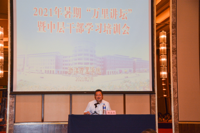 7月13至15日,学校举行2021暑期“万里讲坛”暨中层干部学习会,本次会议围绕学科、学位点、人才队伍建设,推进学校提质升格。董事长应雄等集团领导、校长应敏等学校领导及全校中层干部参会。会议共分为专题报告、主旨报告、专题发言、院长发言、领导点评、小组讨论、大会总结等七个环节。