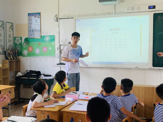 来之前,外语学院团委书记韩颖与19名大学生志愿者们对牟山镇中心小学的生源情况进行调研,发现这所学校的小学生大多是外来务工人员子女,家长照顾孩子的时间较少。支教老师的到来,不仅在一定程度上填补了他们生活上的空白,也给孩子们播撒下一颗梦想的种子。