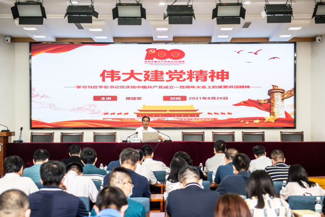 蒋建军作“伟大建党精神”主题报告。他带领大家深刻解读了习近平总书记在庆祝中国共产党成立100周年大会上的重要讲话精神,指出习近平总书记“七一”重要讲话,立足中国共产党百年华诞的重大时刻和“两个一百年”历史交汇的关键节点,回望光辉历史、擘画光明未来,高屋建瓴、思想深刻、内涵丰富,具有很强的政治性、思想性、理论性,体现了深远的战略思维、强烈的历史担当、真挚的为民情怀,是一篇马克思主义纲领性文献,是新时代中国共产党人不忘初心、牢记使命的政治宣言,是我们党团结带领人民以史为鉴、开创未来的行动指南。一百年前,中国共产党的先驱们创建了中国共产党,形成了坚持真理、坚守理想,践行初心、担当使命,不怕牺牲、英勇斗争,对党忠诚、不负人民的伟大建党精神,这是中国共产党的精神之源。伟大建党精神是对马克思主义科学真理的坚定信仰,是对共产主义崇高理想的执着追求,是对全心全意为人民服务根本宗旨的忠实践行,是对为人民谋幸福为民族谋复兴初心使命的勇敢担当。一百年来,中国共产党弘扬伟大建党精神,在长期奋斗中构建起中国共产党人的精神谱系,锤炼出鲜明的政治品格。他指出,作为身处新时代的高校教师党员和党务干部,要不断深入学习伟大建党精神,要将伟大建党精神镌刻于心、落实于行,在为党育人、为国育才中实现人生理想。