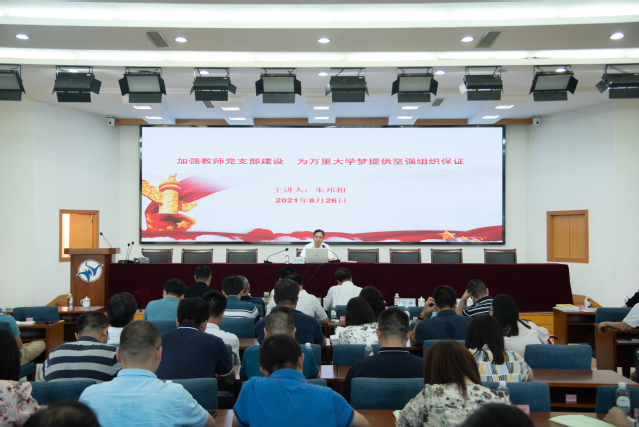 8月26日至27日,为进一步学习贯彻落实习近平总书记在庆祝中国共产党成立100周年大会上的重要讲话精神和新时代党的教育方针,进一步推进中共浙江省委办公厅《关于深化推进新时代高校党建工作的意见》落地落实,按照中共浙江省教育厅委员会“抓院促系、整校建强”铸魂行动的要求,推动加强学校基层党组织提质增效,以党建引领、思政铸魂推动事业发展、取得实效,学校举行基层党组织书记暑期培训会。党委书记蒋建军,党委副书记王伟忠,纪委书记孙斌,党委委员、党委宣传部部长王福银,党委委员、党委组织部部长朱邦相等学校党委领导,各党务部门负责人,分党委(党总支)书记、副书记,教工党支部书记共80余人参加。王伟忠主持会议。