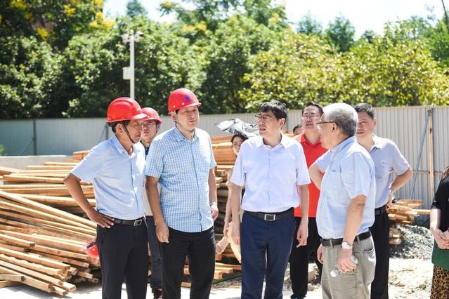 在实地了解建设中的校史馆、学生宿舍楼(北)施工进展情况后,林良富对施工的进度、质量、安全防护以及各场所的卫生环境和防疫准备提出了具体要求,强调统筹抓好开学准备和项目建设工作。