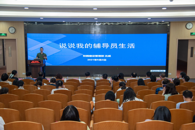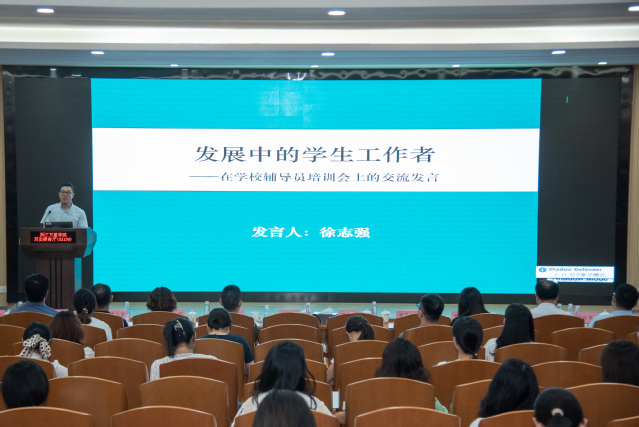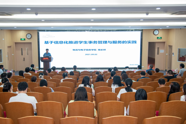 随后,谢莹莹从学生发展已成为高等教育质量评价的核心标准视角分享了关于学生•发展•工作的思考,她以学生发展与学校高质量发展的关系为主线,以学生的成长成才需求为底线,以学生工作新发展为长线,强调要做实做细立德树人工作,并对我校学生工作进行了回顾和规划。校团委书记周娟以“做新时代五为共青团”为主题、设计艺术与建筑学院党委书记徐志强以“发展中的学生工作者”为主题、物流与电子商务学院党委副书记陈彩祥以“基于信息化推进我院学生事务管理与服务的实践”为主题、辅导员代表李丹维以“辅导员素质能力大赛经验分享”为主题、方金荣以“心理育心 精神树人”为主题、张警天以“高举团旗跟党走 赓添活力在支部”为主题、教务部副部长郑亚娟以“教务与学务的联动”为主题、保卫部部长沈威以“说说我的辅导员生活”为主题、研工部部长袁勇军以“研究生学务工作总结”为主题、后勤公司生活思政部部长肖双羽以“后勤工作交流会”为主题,相继作了交流与经验分享。