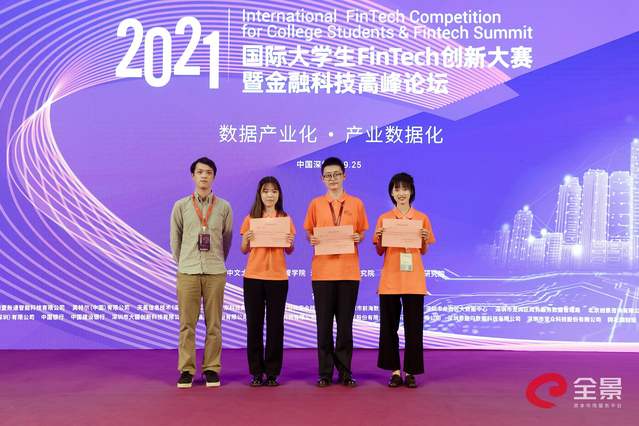 9月25日,2021国际大学生FinTech创新大赛总决赛暨金融科技高峰论坛在深圳落下帷幕。该赛事吸引了中国人民大学、香港中文大学(深圳)、 香港科技大学、中山大学等在内的近三百支队伍报名参赛,经过初赛、复赛层层选拔,最终13支队伍顺利地进入总决赛,我校“云保——基于区块链技术的青少年心理健康保驾护航平台”项目获得季军。