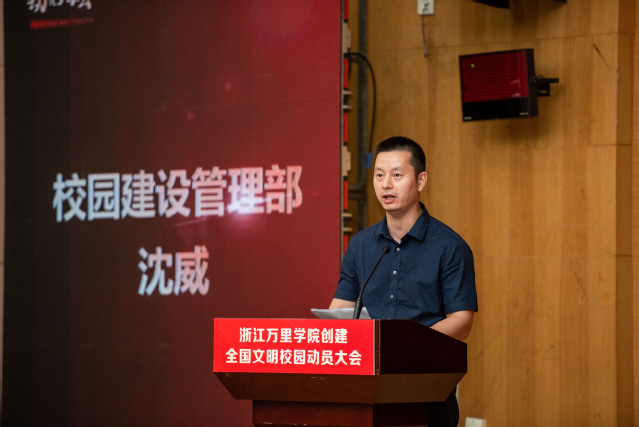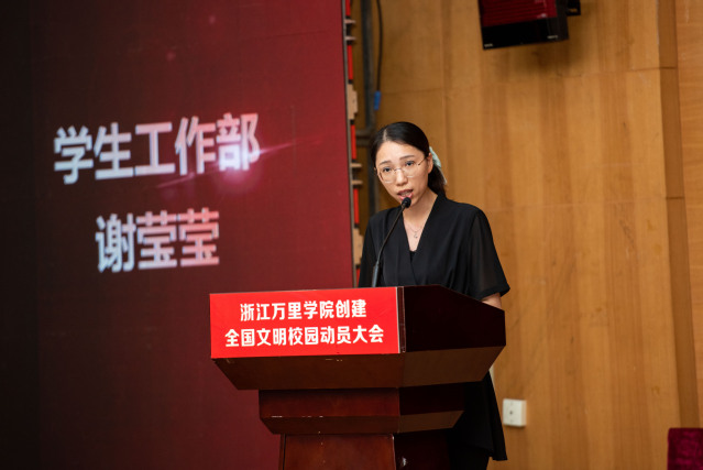 应敏在讲话中指出,目前宁波市正在争创全国文明典范城市,学校借此契机推进全国文明校园创建工作,进一步凝聚对于学校发展战略的共识,进一步增强对于学校实现愿景目标的信心,进一步夯实更名大学的基础,进一步坚定对于万里体制模式的自信,进一步积淀深沉而持久的万里文化,为宁波争创全国文明典范城市贡献万里力量。应敏对创建全国文明校园工作提出四点要求:一是文明校园的创建需要全校上下凝聚起高度的共识,与更名大学相得益彰。目前,学校进入实现更名大学战略目标的新阶段,迈向教学科研并重型的办学新形态,更加需要有坚强的思想保证、强大的精神力量、和谐的环境氛围、良好的人文生态,更加要发挥好文明创建引导人、感染人、鼓舞人的重要作用。我们要提高认识,凝聚共识,以更高的站位增强创建工作的责任感和使命感,把学校事业发展与全国文明校园创建工作融为一体,以高度的思想自觉引领责任自觉、行动自觉,深入开展创建工作,为深化学校内涵发展提供坚强有力的保障,进而达成高水平应用型大学的目标。二是文明创建与中心工作互融互生,需要全校上下汇聚起强大的合力。全国文明校园,最终的指向是人才培养这个中心工作,创建标准高、要求严、任务重,又高度契合学校事业发展全局,各单位、部门要健全机制、聚焦标准、统筹推进抓创建,把创建工作放在心上、抓在手上、落到点上,以抓铁有痕、踏石留印的韧性抓好创建工作,做到善始善终、善做善成。三是文明创建与文化校园互促互进,需要全校上下集成起集体的智慧。从全国文明校园测评体系看,校园文化是文明校园的重要组成部分,文明校园创建也需要文化校园作为支撑,两者互相促进,同向发展。创建全国文明校园,要加强校本特色文化建设、文化阵地建设,推进创建活动与文化活动互融互促。四是创建成果内化于心、外显于行,让文明成为立德树人的最美底色。文明创建过程也是培养人、塑造人的过程,具有春风化雨、润物无声、潜移默化的育人功能,文明创建成果必须内化于心,外显为文明的言行举止、礼仪规范、高雅品位、良好修养与文明习惯。