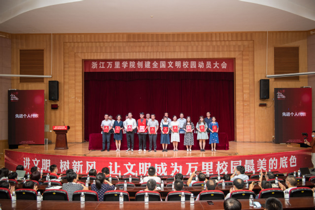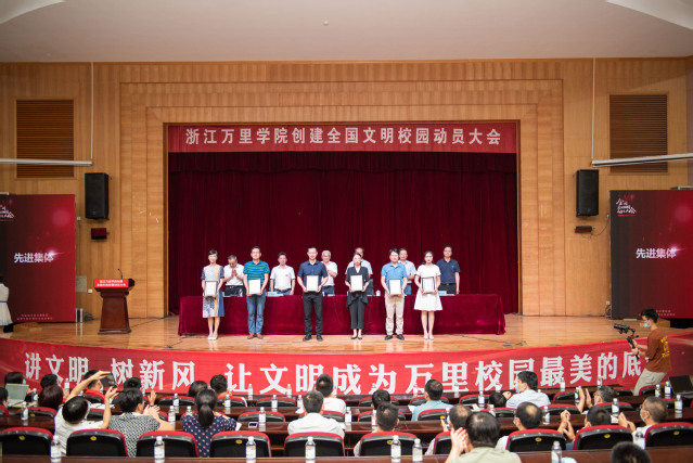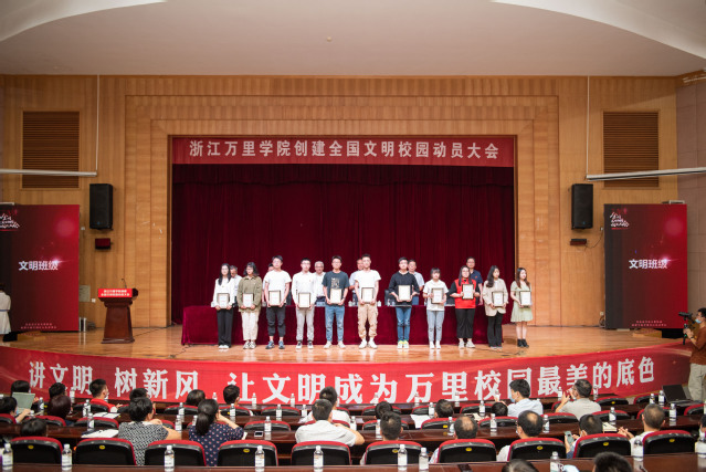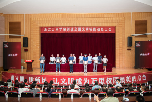授牌仪式后,王伟忠宣读《关于表彰省级文明校园创建工作先进集体、先进个人和文明集体的决定》。会议对物流与电子商务学院等12个先进集体、王标等160名先进个人、量化资产投资第五期班级等13个文明班级、钱湖校区崇仁楼(51号楼)321寝室等37个文明寝室进行了表彰。
