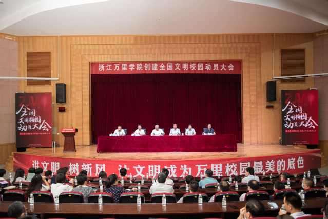 动员大会开始前,举行了省级文明校园挂牌仪式,宁波市教育局一级调研员陈伟军、宁波市教育局宣德处副处长陆灵刚出席挂牌仪式,应敏、蒋建军等校领导参加仪式。陈伟军对万里学院获得首批省级文明校园表示祝贺,他希望万里学院在今后的工作中,以获得省级文明校园荣誉为契机,以更加饱满的状态、更加有力的举措推动校园文明建设取得更加丰硕的成果,争创全国文明校园。应敏表示,浙江省委、省政府授予我校的浙江省首批文明校园金字招牌将在学校大门熠熠生辉,这是一个标志性荣誉,更是一份沉甸甸的责任,学校将扎实做好精神文明建设工作,按照中央文明委有关工作部署,凝心聚力争创全国文明校园,为宁波创建全国典范文明城市贡献万里力量和万里智慧。