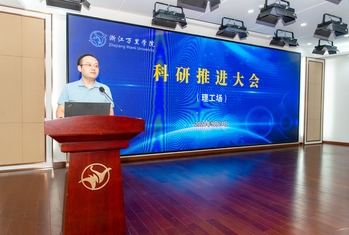 为实现学校跨越式发展,落实新阶段任务,我校分别在9月23日、24日在图书馆报告厅组织召开学校科研推进大会暨专题报告会,会议分人文社科场和理工场。校长应敏,党委书记蒋建军,党委副书记王伟忠,副校长杨震峰,党委委员、秘书长、党委宣传部部长王福银,党委委员、党委组织部部长朱邦相出席会议,规划部、人事部、研究生部、校地合作部负责人,各学院(研究院)领导班子和科研骨干参加会议。会议由科研部部长余丹主持会议。