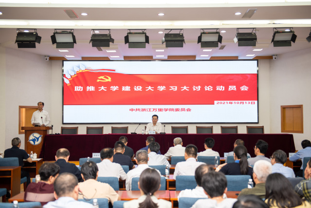 为深入学习贯彻习近平总书记在庆祝中国共产党成立100周年大会上的重要讲话精神,巩固和发展党史学习教育成果,通过学史力行,汇聚奋进力量,助推学校阔步迈入高质量发展新阶段。10月13日,学校召开助推大学建设大学习大讨论动员会,浙江省万里教育集团党委书记、董事长应雄作动员讲话,学校全体中层以上干部、民主党派负责人参会。会议由校党委书记蒋建军主持。