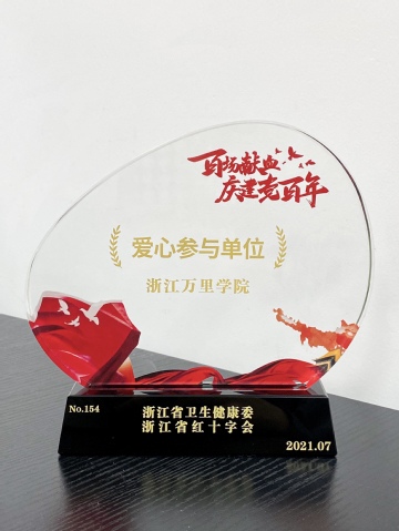 近日,我校被浙江省卫生健康委员会、浙江省红十字会授予“百场献血庆建党百年”爱心参与单位殊荣。