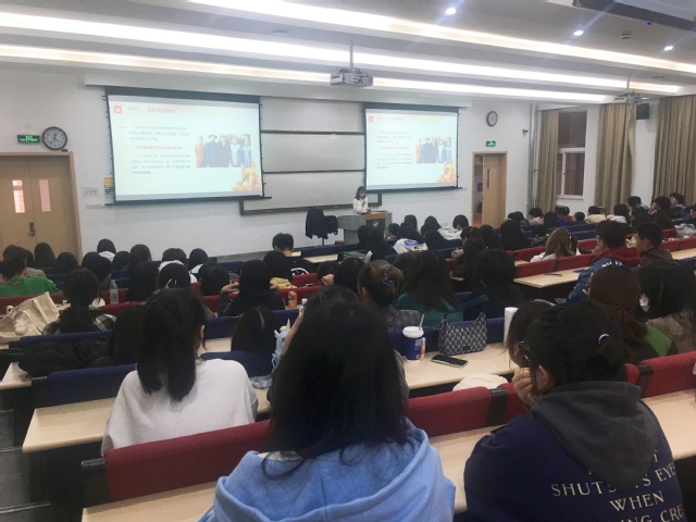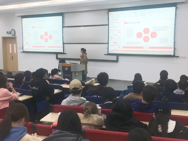 10月22日下午,在钱湖校区53309教室,来自学校党史学习教育大学生宣讲团的李好、侯丹丹两位“00后”大学生为同学们讲授党史课,台下听课同学报以热烈掌声。