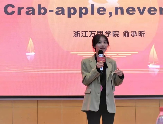10月31日下午,由宁波市外事办、宁波市教育局、共青团宁波市委牵头主办的“百年正辉煌,青春心向党”——宁波市庆祝中国共产党建党百年英语演讲比赛在宁波大学举行,我校新闻学19级学生俞承昕以总分88.5分的成绩排名第四,荣获二等奖。中德设计与传播学院会展经济与管理专业的陈可、黄新宇,外语学院英语专业的周易数获得入围奖。