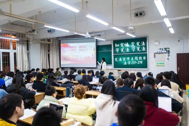 自11月下旬起,各二级学院发挥团学组织优势,精心策划、创新形式,将宪法教育有机融入主题班会、社团活动,通过宪法晨读、法治班会、法治主题团日活动等多种形式,培养学生学习宪法、尊崇宪法的日常行为习惯。