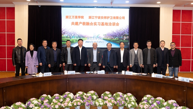 1125日,我校举行与浙江宁波安邦护卫有限公司共建产教融合实习实训基地洽谈会暨校企合作签约仪式。校长应敏、副校长马建荣、陈建革,商学院、物流与电子商务学院班子成员,相关部门负责人、浙江宁波安邦护卫有限公司党委书记、董事长、总经理陈迪华一行出席签约仪式。会议由陈建革主持。