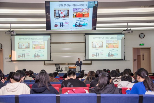 陈忠法联系党的十九届六中全会精神学习,结合自己学习工作经历,围绕“服务三农工作、助力共同富裕的实践,大学生如何为实现共同富裕作贡献,对青年学生成长的几点建议”三个方面问题,与同学们开展了面对面的真情交流。